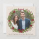 Lleva la elegancia orgánica moderna a tus saludos navideños con esta tarjeta de acuarela personalizable. El corazón del diseño presenta tu foto favorita rodeada de una corona pintada a mano, acentuada con vibrantes poinsettias y bayas de acebo. Los tonos modernos de verde pepino y rojo cereza resaltan maravillosamente contra un suave fondo de avena, creando un ambiente chic y alegre. Envía saludos de temporada y captura el espíritu de la temporada de una manera fresca y elegante. ¡Personalízala con tu foto y haz que sea única!