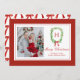 Tarjeta de vacaciones de color de agua preppy Monograma Wreath, Navidades de fotos personalizados tarjeta texto editable.