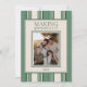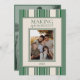 ¡Envíe saludos de vacaciones con esta tarjeta de vacaciones de dos bandas fotográficas para que los espíritus brillen! Este diseño presenta un sencillo fondo de rayas verdes con una opción de foto en color en la parte delantera y una opción de foto en blanco y negro en la parte posterior. Personaliza con el nombre de tu familia y el saludo personal de temporada. ¿Tiene una solicitud de personalizado? ¡Mándame un mensaje!