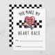 Haces mi tarjeta de El día de San Valentín de carrera cardíaca con un fresco patrón de corazón rojo y tablero de ajedrez.