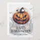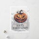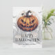 Carta feliz de Halloween con calabazas espeluznantes, murciélagos y la luna llena. Personaliza fácilmente esta hermosa tarjeta de acuarela de Halloween con tu nombre y texto familiar.