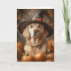 Celebra la aullante diversión de Halloween con una linda tarjeta de bruja de Yellow Labrador Retriever que seguramente va a recibir sonrisas.