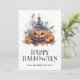 Una hermosa acuarela de Halloween con una calabaza espeluznante y una casa embrujada. Personalice fácilmente esta tarjeta personalizado de Halloween con su nombre y texto familiar.