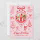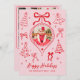 Tarjeta Festiva Hand Drawn Bows Photo Pink and Red Christmas Happy
