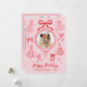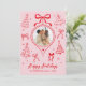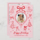 Tarjeta Festiva Hand Drawn Bows Photo Pink and Red Christmas Happy