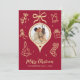 Tarjeta Festiva Hand-Drawn Doodle Red Gold Photo Merry Christmas