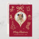 Whimsical Hand Drawn Christmas Motif 4 Photo Merry Christmas Red and Gold Holiday Card. Add a touch of festive charm to your holiday greetings with this adorable hand-drawn scribble Christmas photo card. The front features cute, playful faux gold Christmas motifs arranged around a central ornament illustration with a coquette bow, framing your main family photo, along with a cheerful Merry Christmas script and your family name—all set against a deep red or maroon red background.