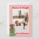 Tarjeta Festiva Hand Drawn Retro Citrus Green Pink Photo Christmas