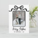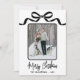 Send holiday cheer with this vertical Christmas card featuring a single centered photo framed by a simple rounded-rectangle outline in black. A hand-drawn coquette bow sits right at the top in matching black line art, adding a sweet touch above the image. Below the framed photo, “Merry Christmas” appears in black handwritten script, with space underneath to center your family name or individual names.
