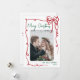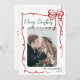 Send holiday cheer with this vertical Christmas card design. The front features a vertical photo in the center, framed by a swirling ribbon-style doodle border in a mix of red and green for a festive touch. A sweet hand-drawn coquette bow sits in the top right corner in coordinating holiday colors, while “Merry Christmas” appears at the top left in blended red and green script. The bottom right includes space for your family’s last name or individual names in matching seasonal tones. The background stays clean and white so the colorful details stand out.