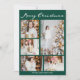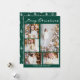 Elegant emerald green holiday cards with chic handwritten scrawl MERRY CHRISTMAS above your family photo collage of your 5 favorite 2025 pictures. The beautiful back features a pattern of white hand drawn pine and fire trees. Modern Christmas cards featuring one vertical photograph in the center and 4 square pictures on the sides.