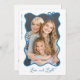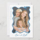 Estas adorables tarjetas Hanukkah muestran tu foto favorita en un moderno marco ondulado azul con una brillante proa, sobre un simple fondo blanco. La escritura moderna dice "Amor y luz", y hay espacio para un mensaje personal en la parte de atrás.