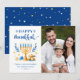 Envíe sus deseos con esta tarjeta de fotos de vacaciones que incluye un guión de Hanukkah asombroso y símbolos judíos de vacaciones para resaltar su mensaje de bienvenida.