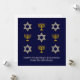 Tarjeta de saludo de vacaciones HAPPY HANUKKAH, moderna y personalizada, que muestra la estrella de oro y plata falsas de DAVID y MENORAH en un patrón de baldosas con un fondo azul de medianoche. El texto lee HAPPY HANUKKAH con un nombre de marcador de posición, y es PERSONALIZABLE, así que puede PERSONALIZARLO agregando su nombre u otro texto. También puede personalizar su mensaje al revés. Ideal para las celebraciones de Hanukkah, y con personalización puede ser adecuado para cualquier celebración de temática judía. Podrá elegir entre una amplia selección de tarjetas, regalos y artículos de fiesta de Diseño Berenés. También disponible en blanco.