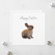 Süßes Kaninchenjungtier schaut erwartungsvoll auf weißem Untergrund - klares, ruiges Design.