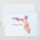 Send warm Easter greetings from the Sunshine State with this unique Florida-themed card. The design features a Florida State map in pretty pastel colors with beautiful pastel Easter eggs. A whimsical Easter bunny head with heart shaped glasses and a purple bow completes the design. The front text reads "Happy Easter" and the back text reads "Sending warm greetings from Florida for a joyous Easter!" The text may be edited for personalization at no additional charge. Special design requests accepted.