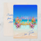 The design on this tropical-themed Easter card features a brightly colored "Happy Easter" text adorned with pastel Easter eggs, ribbons, and spring flowers elegantly floating above a serene turquoise ocean. The style is whimsical and soft creating a dreamlike atmosphere! The back text reads "Sending warm wishes from Florida for a joyous Easter!" The text may be edited for personalization at no additional charge. Please browse our complete collection of tropical-themed Easter cards, gifts, and home decor. Special design requests accepted.