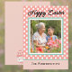 This Easter card, which is available as a download and a printed card, features your photo with a spring peach and soft teal green trim and background. The peach background is dotted with white eggs, almost like wallpaper, and the back includes two decorated Easter eggs. There's plenty of room on the back to write your own sentiment, either with the Zazzle tools or with pen on the printed version, or just leave it as is, with the peach color and eggs. Make sure to upload your photo where indicated -- you'll need a photo with a similar shape, slightly taller than wide.
