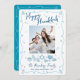“Happy Hanukkah.” It's that time to touch base with your family and friends to celebrate Hanukkah and usher in the festival of lights. On the front, fun, whimsical navy blue handwritten script typography and turquoise teal blue hand drawn Hanukkah icon doodles, along with the photo of your choice, overlay a white background. 4 additional personal photos, your custom message and white hand drawn doodles on turquoise blue adorn the back. Feel the warmth and joy of the holiday season when you send out this fun, playful, modern, personalized 5 photo Hanukkah greeting card. Make this Hanukkah one to remember!