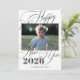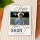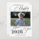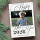 Modern black and white Happy New Year 2026 script custom photo minimalist elegant holiday card with text template.