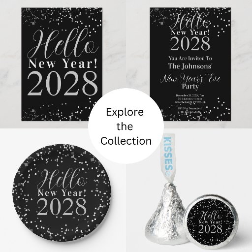 Hello New Year! Celebrate the arrival of the New Year with these stylish black and silver Happy New Year design. Featuring a glitter confetti effect sparkle design, they add a festive touch to any celebration. Perfect for ringing in the new year in style! Customize easily by using the easy to edit templates.