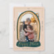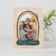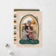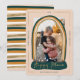 Único, moderno y mágico, moderno Navidad de nieve del mundo foto tarjeta de vacaciones para enviar a su familia y amigos esta temporada de vacaciones. El diseño presenta un marco fotográfico único con un marco moderno de rayas de color arcoiris en forma de globo de nieve. "Happy Place" se muestra en un elegante guión de oro falso dentro de la base del globo de nieve. Un sencillo y moderno marco de frontera de oro falso crea secciones para mostrar el año, el saludo de vacaciones y la firma familiar. Sencillas estrellas blancas y caída de la nieve sobre la foto para añadir un brillo y un aspecto mágico. El reverso presenta un diseño moderno de rayas doradas y multicolor. Todas las obras de arte y ilustraciones son obras de arte originales hechas a mano por Moodthology Papery.