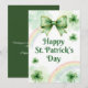 Celebrate St. Patrick’s Day with this festive greeting card featuring a cheerful Irish-inspired design. Perfect for friends, family, coworkers, or clients, this card is ideal for spreading luck, joy, and shamrock-filled vibes on March 17th. A great choice for gifting, mailing, or adding to a St. Patrick’s Day celebration.