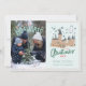 This card features a fun, split-design greeting that merges a personal photograph with an illustrated theme. One side contains a candid, warm-toned photograph set in a winter environment. This photo is overlaid with the humorous, popular phrase: "I'D RATHER STAY AT HOGWARTS", conveying a lighthearted, magical preference. The other side of the card displays a charming, stylized illustration of Hogwarts Castle accented by falling snow and a soaring owl. This section is personalized with a festive, hand-lettered message reading "THIS Christmas 20XX" and includes the family's names and warm holiday wishes.