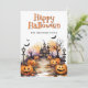 Tarjeta Festiva Hauned Mansion Bat Jack O'Lanterns Halloween Card