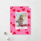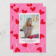 Cute and bright Valentine's day flat greeting card with photo and heart lollipops pattern. Modern script lettering "XOXO". Pink and red colors. You can customize card with your text and photo.