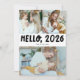 Whimsical and modern New Year's photo template card featuring a typography text that says "Hello, 2026" with 3 of your pictures. You can add another picture and a message on the back of the card.