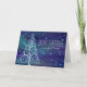 Hermosa tarjeta de vacaciones con ricos y llamativos colores en tonos azules, verdes y morados tiene un efecto bokeh detrás de un gráfico árbol de Navidad hecho de remolinos y brillantes estrellas Un saludo de vacaciones perfectamente simple y elegante para tu hermano.