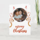 Tarjeta de Navidad personalizada con foto de familia y follaje rojo. Hermoso follaje rojo-naranja. Personaliza la tarjeta con tu foto familiar.
