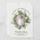 Esta tarjeta de Navidad con anuncio de nacimiento de bebé es perfecta para aquellos que presentan a su pequeño milagro navideño a amigos y familiares esta temporada. Combinar un tradicional anuncio de nacimiento con su tarjeta de vacaciones anual es una forma divertida de asegurarse de que su tarjeta se destaque este año. Cuenta con una hermosa corona pintada con follaje invernal y flores blancas elegantes que rodean una foto destacada de su miembro más nuevo de la familia en la parte frontal, junto con plantillas fáciles de llenar para los datos de nacimiento de su bebé. La parte posterior presenta una pintura de follaje invernal que coincide detrás de una plantilla de foto perfecta para mostrar a su nueva familia. Escriba un breve mensaje de alegría, o déjelo como está, y agregue el nombre de su familia para un saludo navideño perfecto.