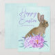 Tarjeta Festiva Hermoso Conejo Pastel Floral Feliz Pascua