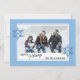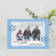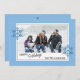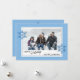 Única, clásica, moderna, bonito y decorativa tarjeta de vacaciones. Cute Happy Holidays saluda texto y habitación para personalizar o personalización con una foto, nombre de familia (o nombres individuales) y mensaje de tu elección, enmarcado por dos copos de nieve de color azul en un elegante vaquero vaquero claro fondo de color azul.