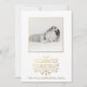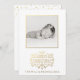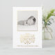 Envía tus saludos navideños con estilo con este elegante diseño de tipografía que presenta copos de nieve dorados, pergaminos y las palabras "Feliz Navidad". La foto que subas estará enmarcada por un simple borde dorado. En el reverso, agrega tus saludos personalizados o incluso los detalles del anuncio de nacimiento. Simple y elegante, pero con estilo y chic: una tarjeta que seguramente difundirá alegría navideña. (P.D. puedes cambiar fácilmente el color de fondo de blanco para que coincida con tu foto: simplemente haz clic en "personalizar" y luego en el pequeño cuentagotas).