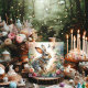 Tarjeta Festiva Hermoso Pastel Flower Garden Rabbit Easter