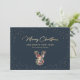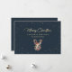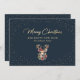 Personalizado azul y dorado La tarjeta navideña con una silueta de reno dorado y una viñeta de nieve. Un falso saludo de vacaciones con guión de Relieve metalizado dorado añade un aspecto más festivo a esta tarjeta de vacaciones. Personalice fácilmente esta tarjeta azul de vacaciones con su nombre familiar y texto o personalizar para crear una hermosa tarjeta de vacaciones de negocios. El efecto Relieve metalizado dorado sólo se simula en las obras de arte. Hay más opciones de color disponibles.