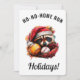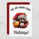 A festive baseball pun for the holidays! This two-sided card features a cute raccoon in a Santa hat nestled in a glove with baseballs and the headline “HO-HO-HOME RUN.”