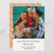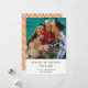 En casa para las fiestas. Esta sencilla tarjeta de vacaciones moderna incluye tu foto favorita junto a un mensaje personalizado de máquina de escribir, así como un caprichoso corazón y una ilustración de rama botánica. En la parte posterior hay un patrón de cuadros rojo naranja cálido.