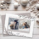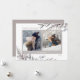 Esta elegante tarjeta de Navidad presenta una serena follaje invernal de hojas, bayas y ramitas en tonos grises y beige. El diseño ofrece espacio para 2 fotos debajo del saludo “Saludos de la Temporada”. Esta tarjeta sofisticada captura perfectamente el calor y la alegría de la temporada invernal.