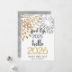 Tarjeta Festiva Hola 2024 Oro Purpurina Fuegos artificiales Año Nu