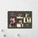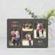 La tarjeta de Navidades coloridos presenta el texto "Merry & Bright" que aparece en texto retro multicolor sobre un fondo gris de carbón. El diseño ofrece cuatro marcos de fotos para tus fotos familiares favoritas. Fotografía © Storytree Studios, Stanford, CA