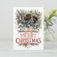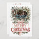 Celebrate the magic of the season with this festive Christmas card, featuring a decorative border of pine branches, holly, berries, and ornaments. The central photo is fully customizable—upload your own joyful family portrait to make it uniquely yours. Beneath the image, “MERRY CHRISTMAS” shines in stylized red and white lettering, adorned with ribbon and pine accents. On the reverse side, a heartfelt Christmas greeting and the sender’s name complete this warm and personal holiday message.