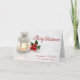 Elegante baya de acebo y vela sobre fondo de estrellas blancas hacen que esta sea una tarjeta de Navidad o tarjeta de saludo festivo perfecta para amigos y familiares.