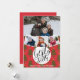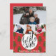 Holly Jolly Fun Script Navidades Pine Tree Festive Holiday Card. Envíe saludos y saludos cálidos de vacaciones a sus seres queridos con esta tarjeta de vacaciones festiva, linda y divertida que incluye cuatro de sus fotos familiares favoritas en un sencillo diseño de collage con la tipografía con letras a mano "Holly Jolly". ¡Deséenles a todos una Feliz Navidad y un Feliz Año Nuevo!