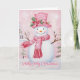 Tarjeta Festiva Holly Jolly Navidades cuestan a Snowman rosado