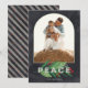 Tarjeta de vacaciones Personalizado de la Marina de Guerra Holly Branch Modern Arch, puede cambiar la palabra paz por alegría, esperanza, amor o cualquier cosa que desee, viene con una elegante Marina de Plata
