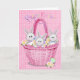 Montón de conejitos en una canasta de Pascua con margaritas y huevos.